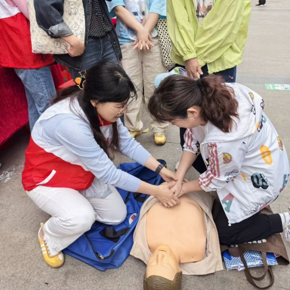 消防與衛(wèi)健部門的現(xiàn)場互動(dòng)體驗(yàn)環(huán)節(jié)更成為活動(dòng)亮點(diǎn)。消防工作人員詳細(xì)講解滅火器、應(yīng)急包、救援繩等常用應(yīng)急器材的使用方法,并邀請(qǐng)居民親手操作滅火器,模擬初期火災(zāi)撲救,在實(shí)操中掌握關(guān)鍵自救技能;醫(yī)護(hù)人員則通過模擬人演示,現(xiàn)場教學(xué)心肺復(fù)蘇、異物卡喉急救等實(shí)用技巧,吸引50余人次參與學(xué)習(xí)咨詢,讓居民在親身體驗(yàn)中提升應(yīng)急處置能力。