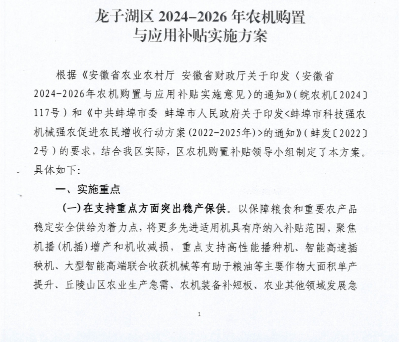 龍子湖區(qū)2024-2026年農(nóng)機(jī)購(gòu)置與應(yīng)用補(bǔ)貼實(shí)施方案